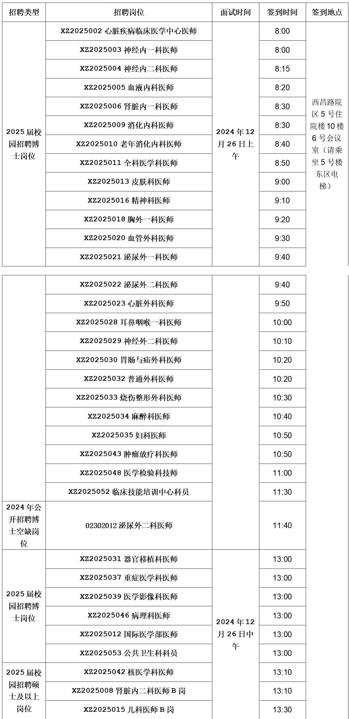 2024年12月26日(星期四),具體各崗位安排見下表。