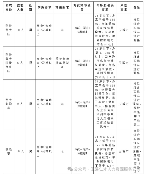 10.在玉溪市公安局紅塔分局工作過的輔警人員離職不滿一年的不得報名參加此次招聘。