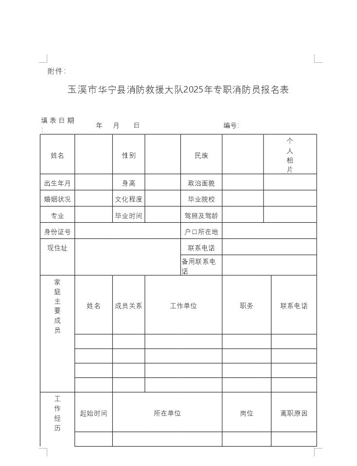 玉溪市華寧縣消防救援大隊(duì)2025年專(zhuān)職消防員報(bào)名表.docx