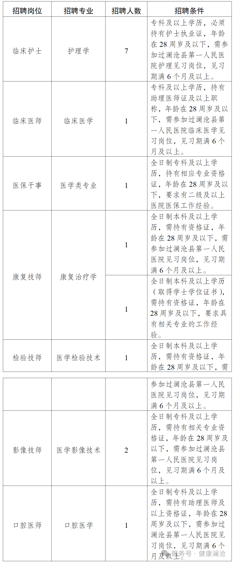 瀾滄縣緊密型醫(yī)共體總醫(yī)院惠民鎮(zhèn)分院公開招聘編外專業(yè)技術(shù)人員公告