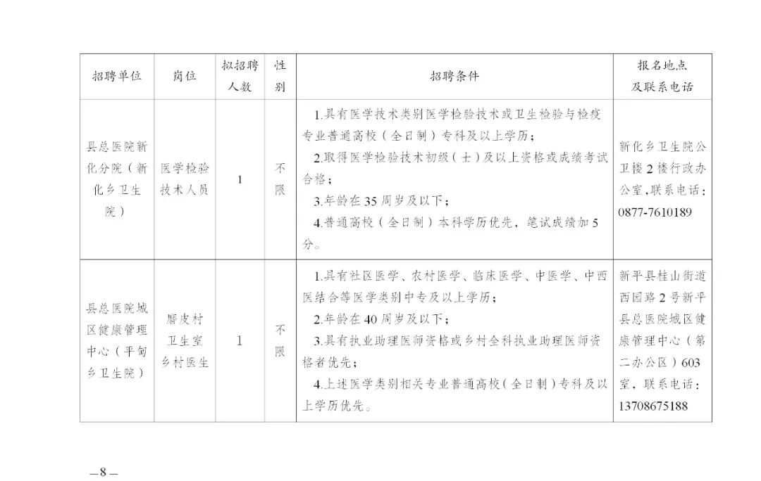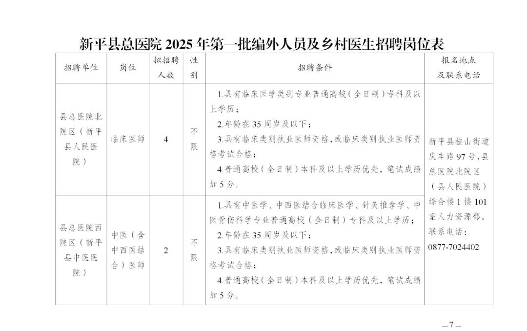 附:新平縣總醫(yī)院2025年第一批編外人員及鄉(xiāng)村醫(yī)生招聘崗位表