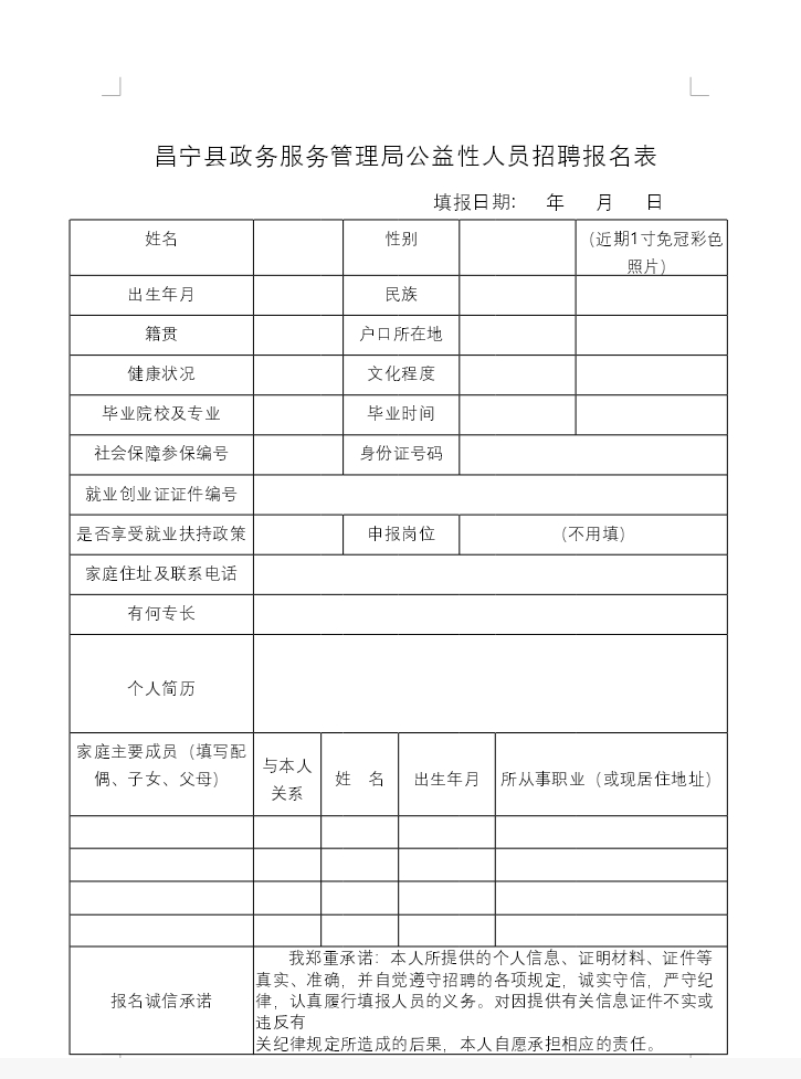 附件:昌寧縣政務服務管理局公益性人員招聘報名表