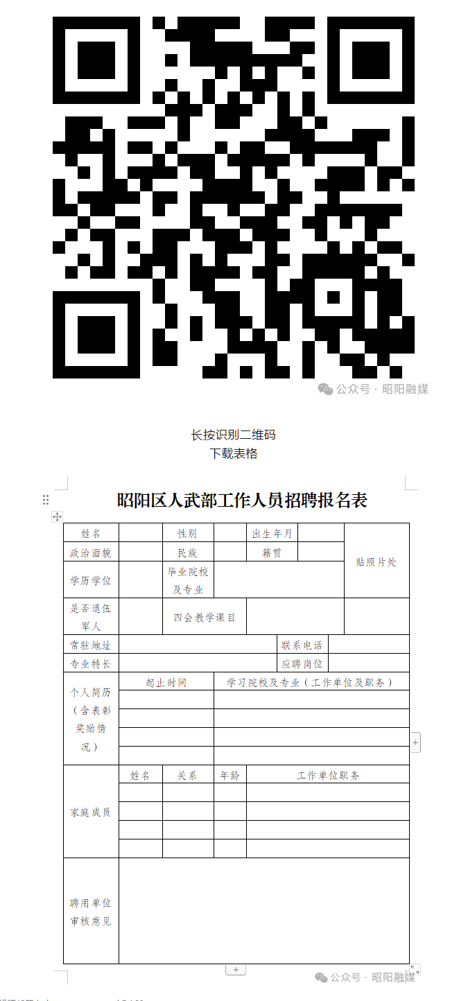 5.《昭陽區(qū)人武部工作人員招聘報名表》(見附件);