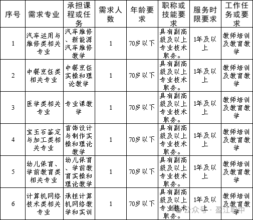 根據(jù)云南省教育廳發(fā)布的《云南省教育廳關(guān)于2025年春季招募銀齡教師支持職業(yè)教育的公告》,結(jié)合州縣相關(guān)會(huì)議精神,2025年盈江縣職業(yè)高級(jí)中學(xué)招募銀齡教師6人。