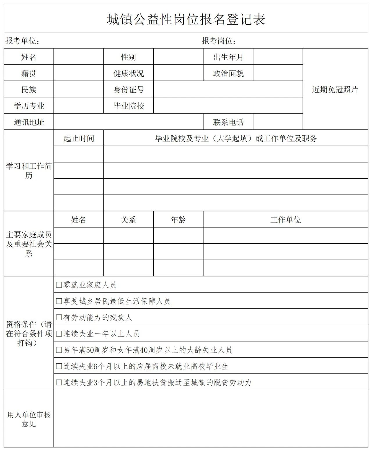 所有材料拍照(或掃描)與《城鎮(zhèn)公益性崗位報(bào)名登記表》(文末附件)一起打包后統(tǒng)一發(fā)送至郵箱:qjdlzx@126.com;也可帶上相關(guān)材料到巧家縣第六中學(xué)辦公室二樓現(xiàn)場報(bào)名。