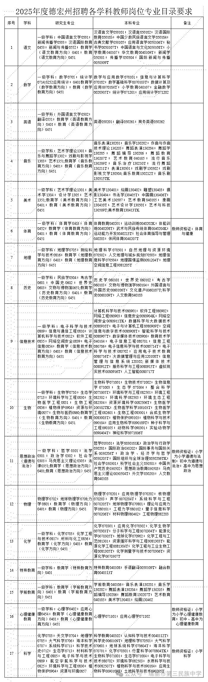 3.部分崗位學(xué)歷條件有變化的以《2025年德宏州教育部門考核招聘緊缺專業(yè)學(xué)科優(yōu)秀人才崗位計(jì)劃表》所列為準(zhǔn)。