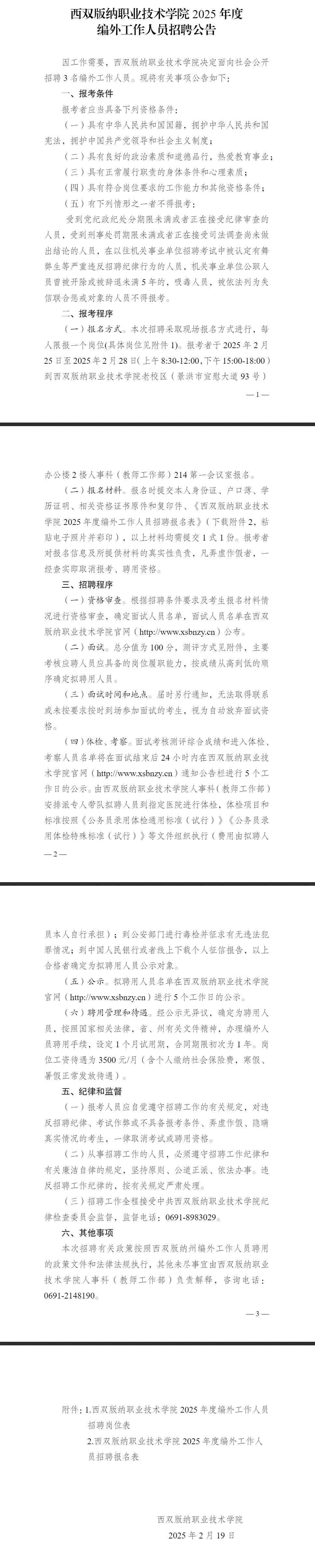 西雙版納職業(yè)技術學院2025年度編外工作人員招聘公告