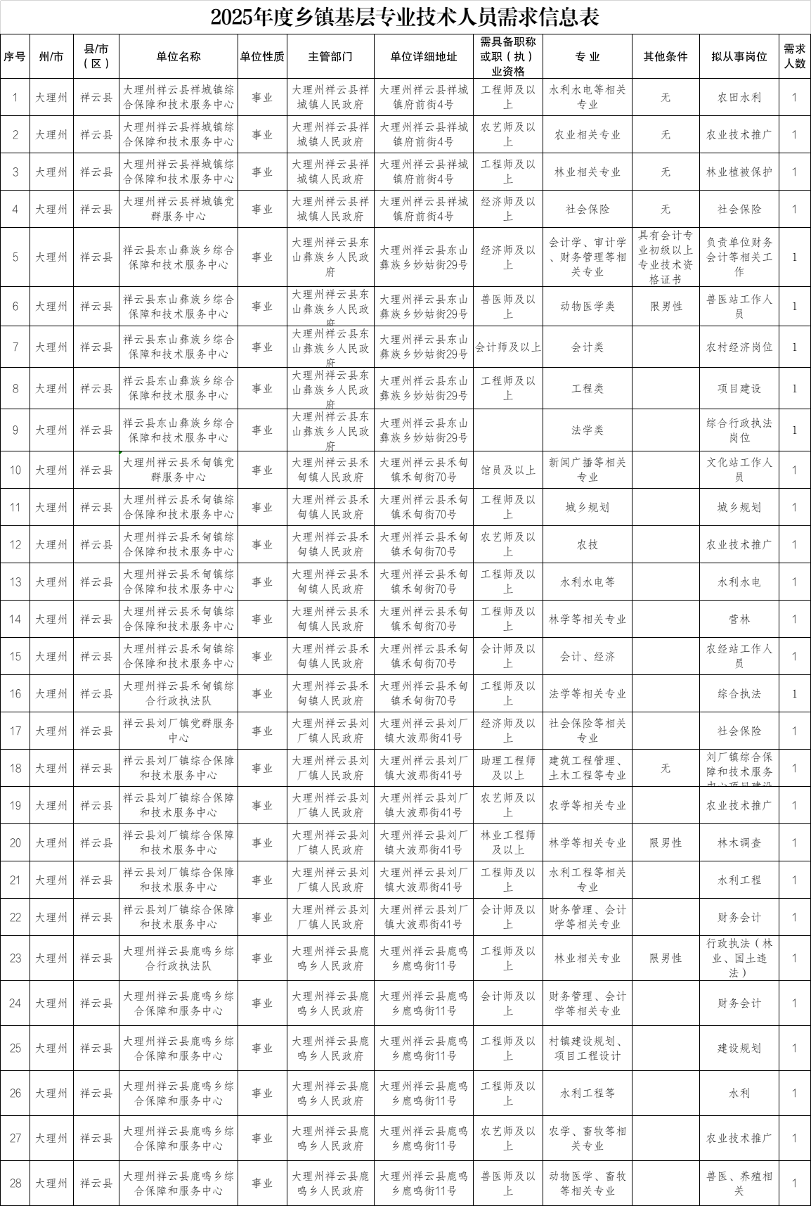 祥云縣2025年鼓勵專業(yè)技術(shù)人員到鄉(xiāng)鎮(zhèn)基層服務(wù)所需服務(wù)崗位公告