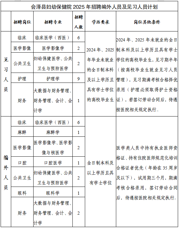 會澤縣婦幼保健院2025年招聘編外人員及見習(xí)人員公告