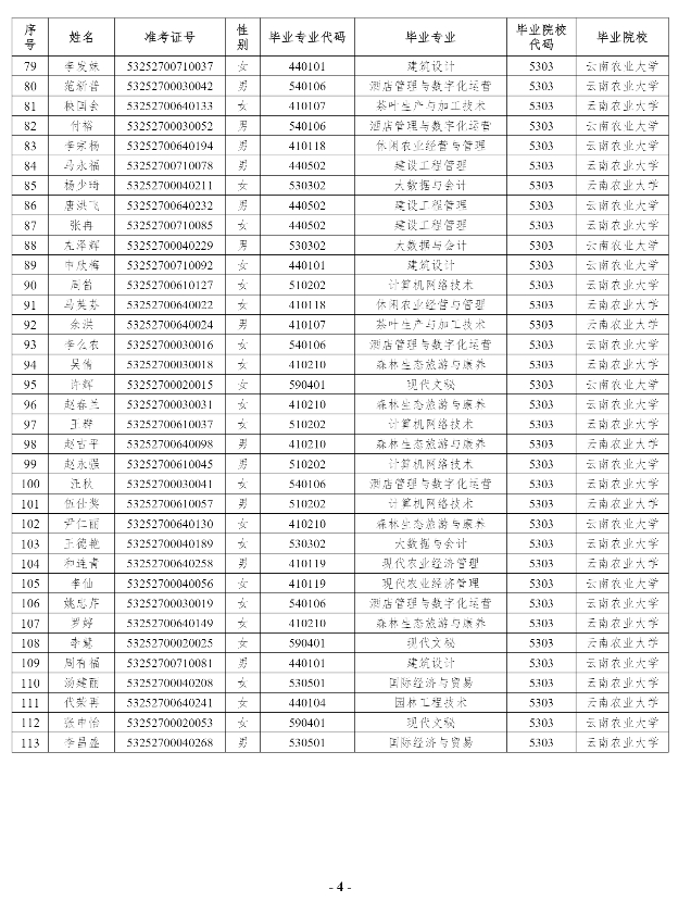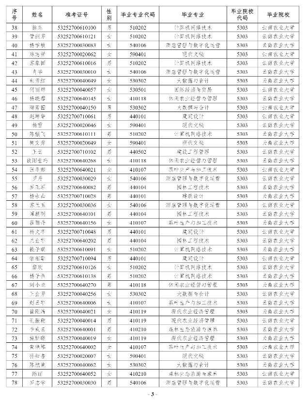 附件:云南農業(yè)大學2025年專升本原建檔立卡考生名單