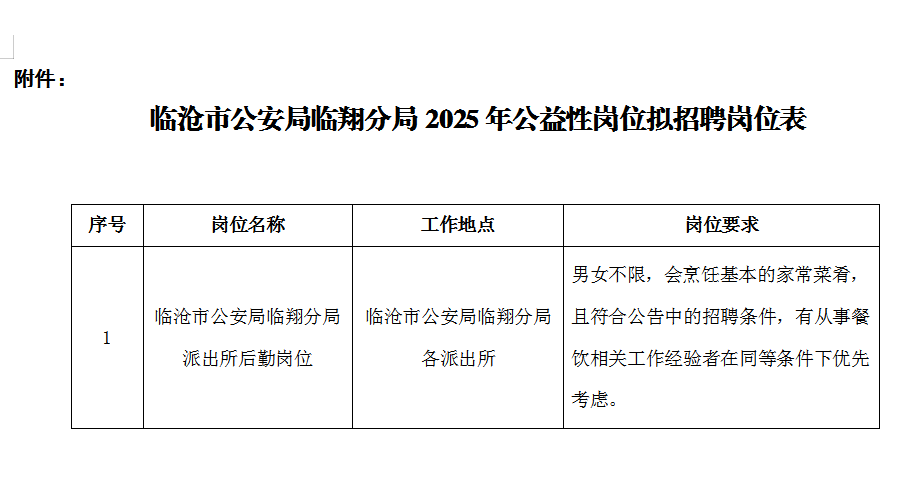 附件:臨滄市公安局臨翔分局2025年公益性崗位擬招聘崗位表