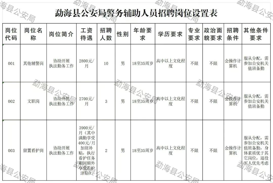 根據(jù)工作需要,勐海縣公安局現(xiàn)面向社會公開招聘警務(wù)輔助人員(以下簡稱輔警),有關(guān)事項(xiàng)公告如下:
