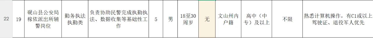 硯山縣公安局2025年第一批警務輔助人員招聘公告