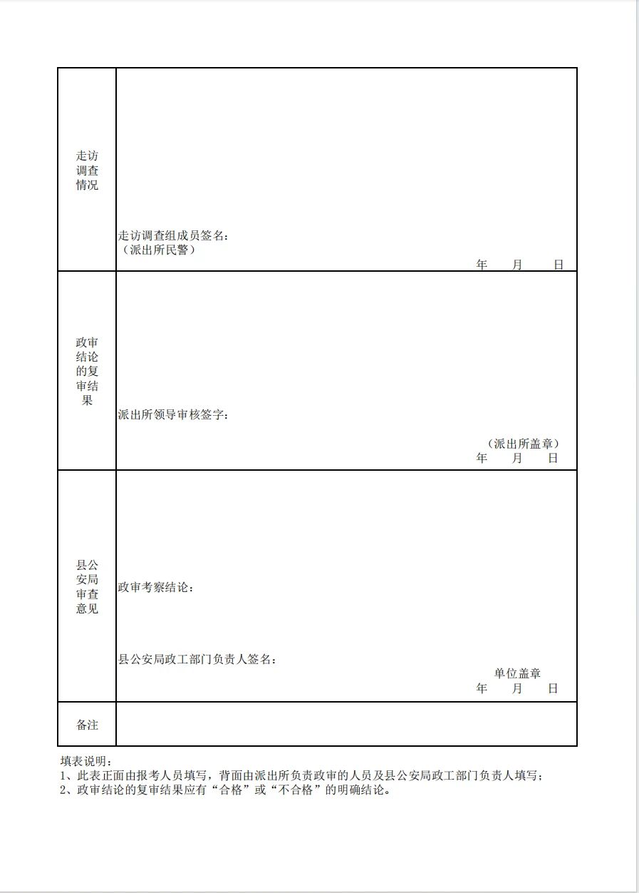 政審參照公安機關(guān)人民警察錄用政審標準執(zhí)行,由戶籍所在地派出所具體實施。