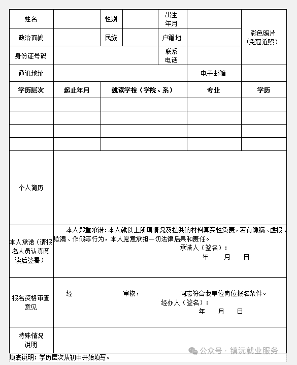 附件:2025年中國共產(chǎn)黨鎮(zhèn)沅彝族哈尼族拉祜族自治縣委員會統(tǒng)一戰(zhàn)線工作部公益性崗位招聘報名表
