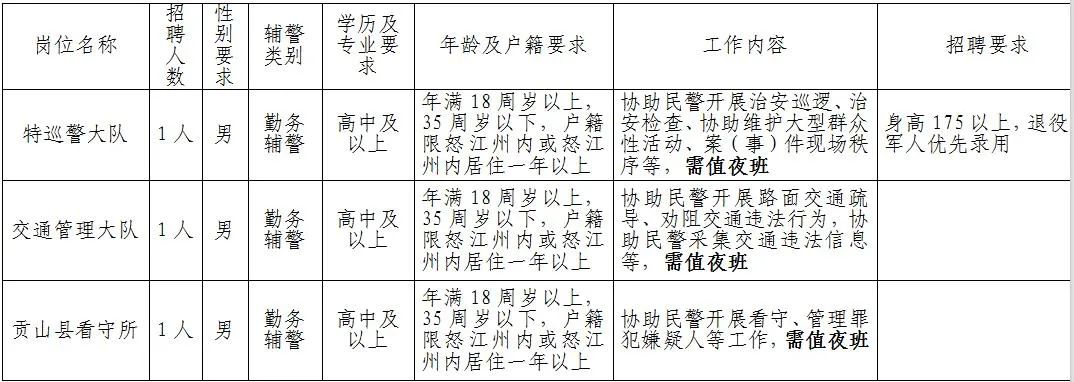貢山縣公安局公開招聘3名警務(wù)輔助人員公告