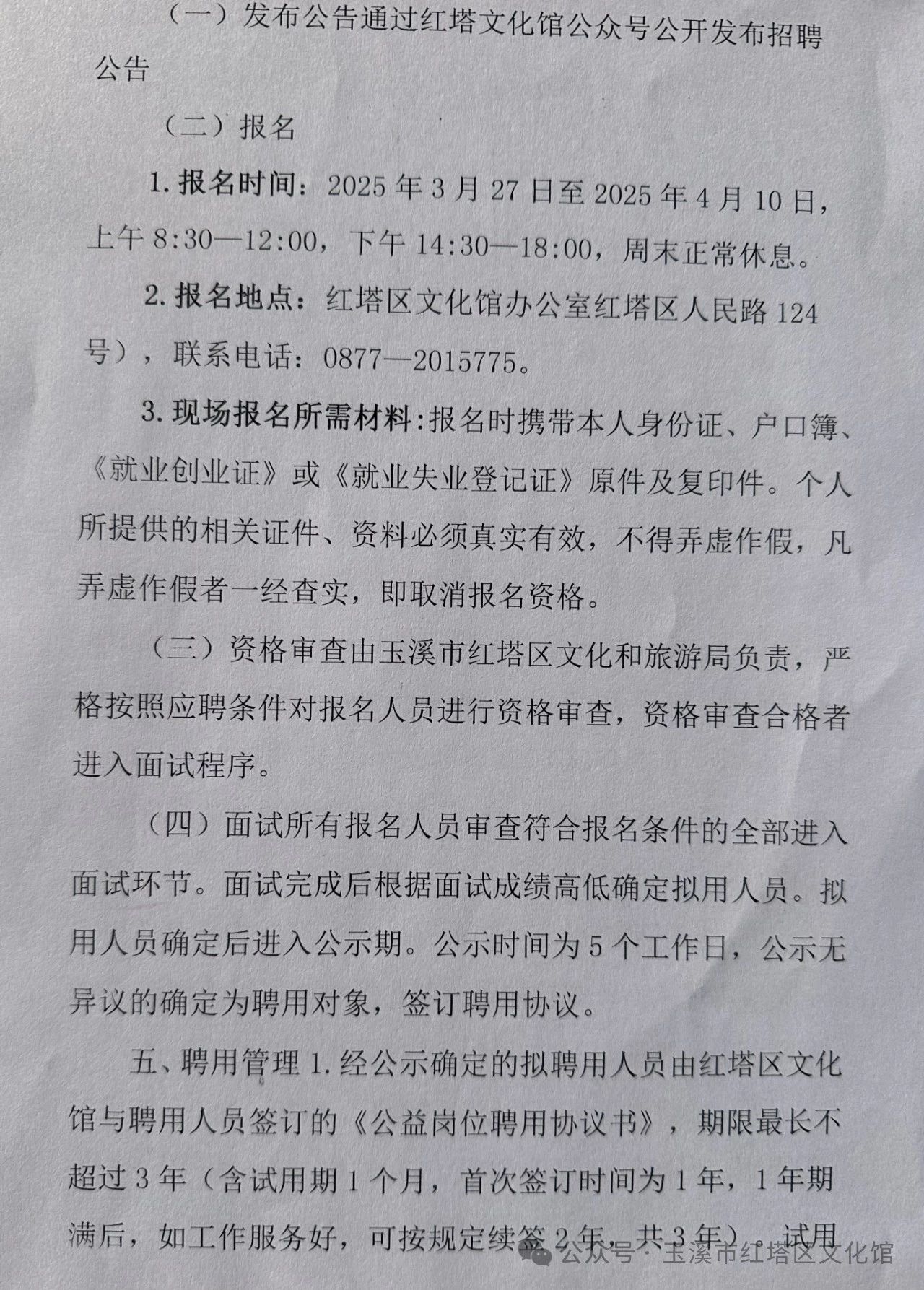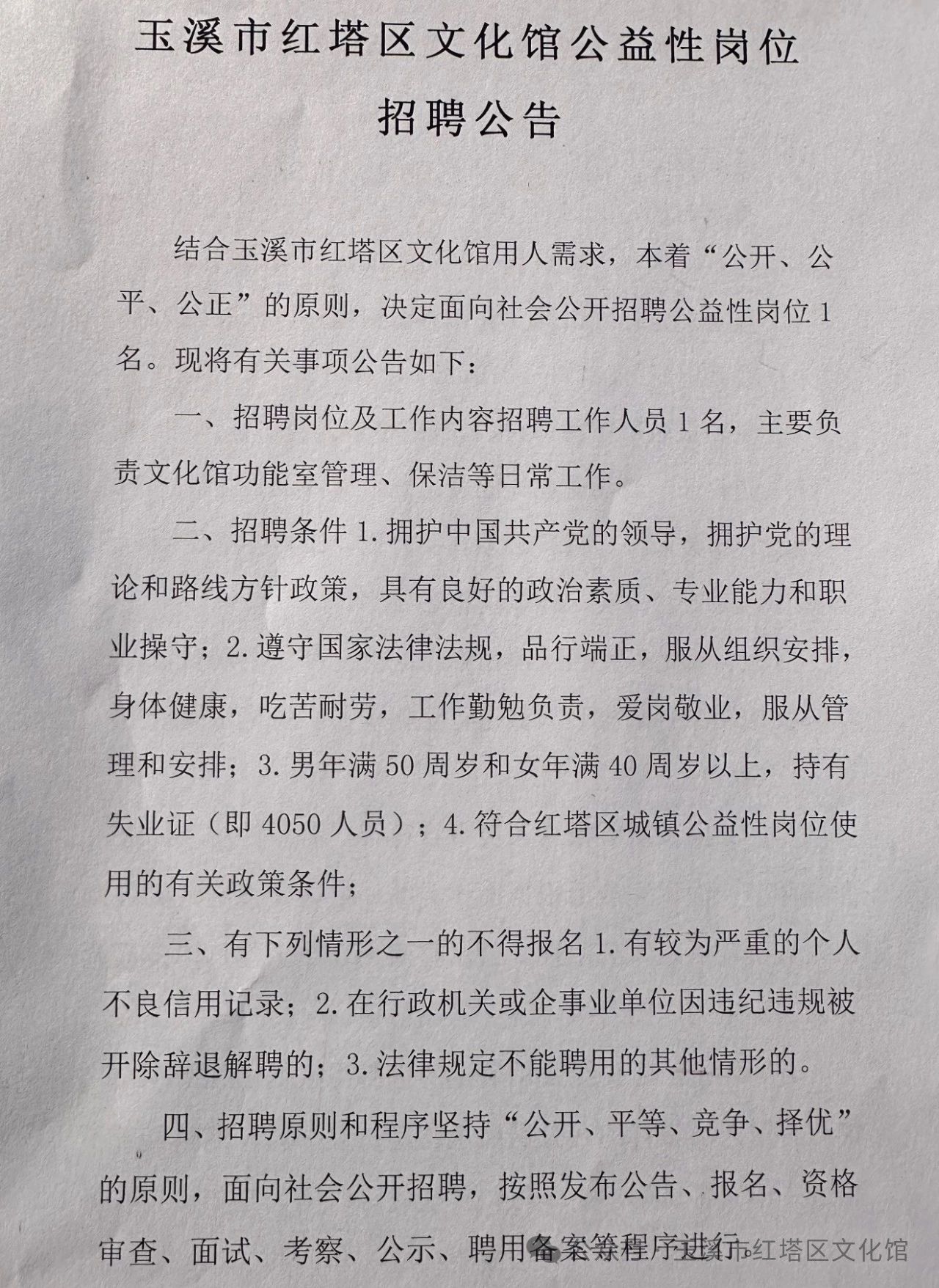 2025年玉溪市紅塔區(qū)文化館公益性崗位招聘