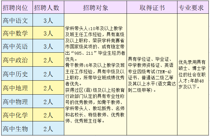 骨干教師:綜合年薪20萬(wàn)—30萬(wàn),以崗定酬,優(yōu)績(jī)優(yōu)酬;多年教學(xué)及班主任管理經(jīng)驗(yàn),具有高級(jí)職稱(chēng),所帶畢業(yè)班成績(jī)優(yōu)秀者優(yōu)先;優(yōu)先錄用碩士、博士研究生。