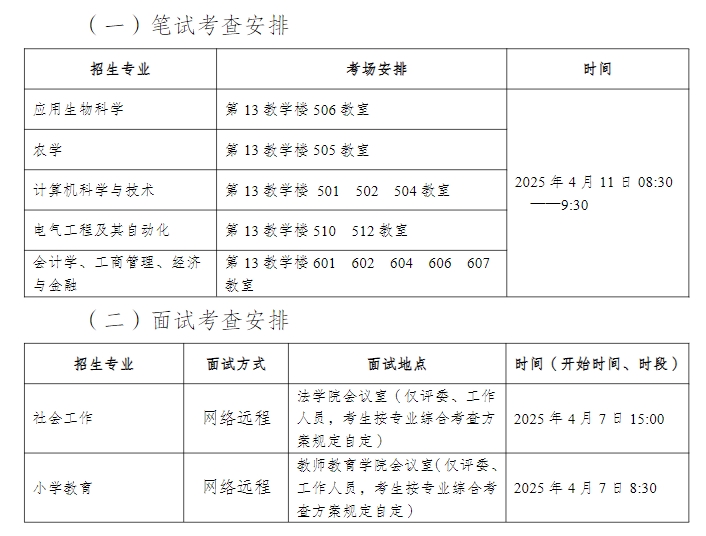 (二)筆試+面試。經(jīng)濟(jì)管理類(會(huì)計(jì)學(xué)、工商管理、經(jīng)濟(jì)與金融等專業(yè))、農(nóng)學(xué)類專業(yè)(農(nóng)學(xué)、應(yīng)用生物科學(xué)專業(yè))、計(jì)算機(jī)科學(xué)與技術(shù)、電氣工程及其自動(dòng)化等專業(yè)采用“筆試+面試考查方式。