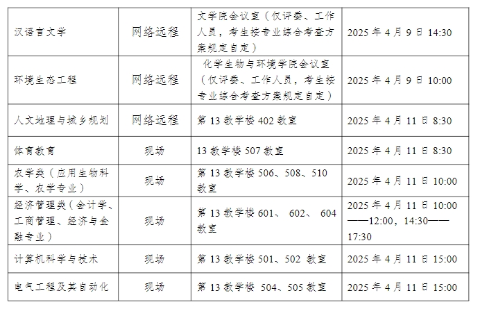 (二)筆試+面試。面試考查滿分100分,考生現(xiàn)場(chǎng)或網(wǎng)絡(luò)遠(yuǎn)程面試、評(píng)委現(xiàn)場(chǎng)打分:筆試考查卷面滿分100分,考查時(shí)間1 小時(shí),閉卷,學(xué)校提供考試大綱(見(jiàn)附件)。面試成績(jī)、筆試成績(jī)占最終成績(jī)的比例見(jiàn)各專業(yè)綜合考查方案。