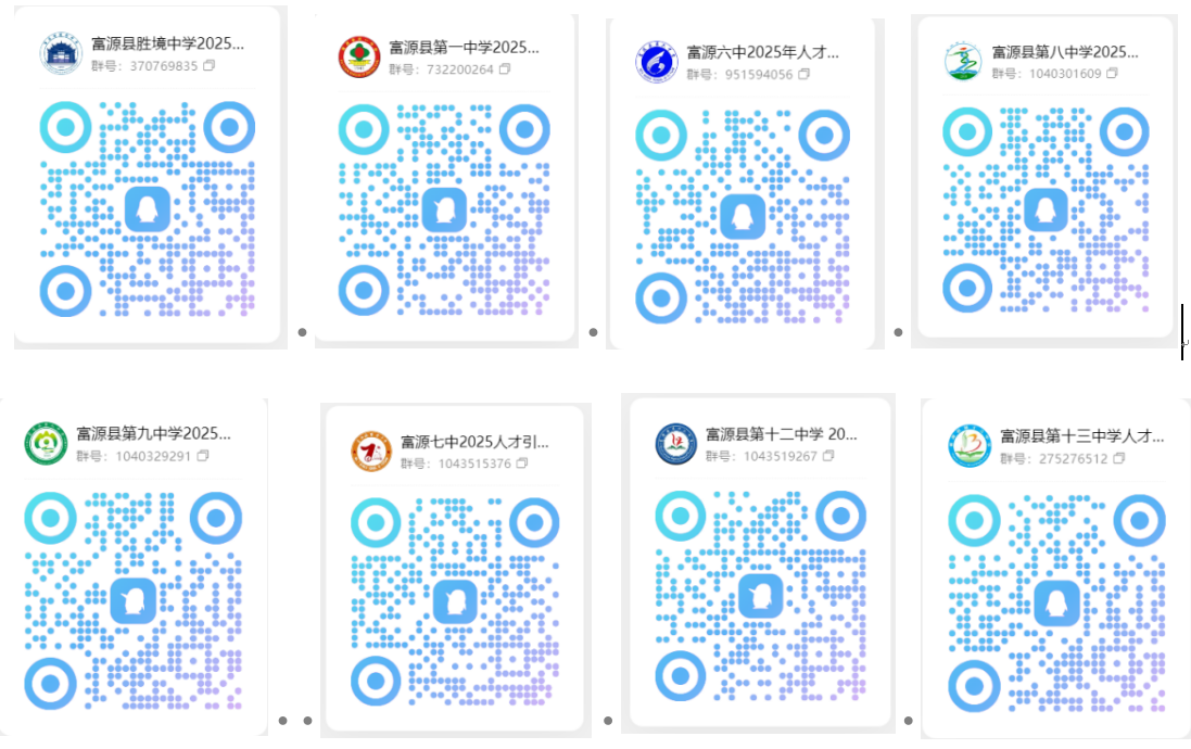 ②網絡預報名成功的考生,請分別掃碼加入以下對應報考學校的QQ群,1人只能加入其中一個群,入群后以“學校+學科+姓名”命名。本人須在規(guī)定時間內參加現場報名資格審查,通過后方可參加考試。未在規(guī)定時間內參加現場報名確認和資格審查的,視為自動放棄報考資格,責任由考生自行承擔。