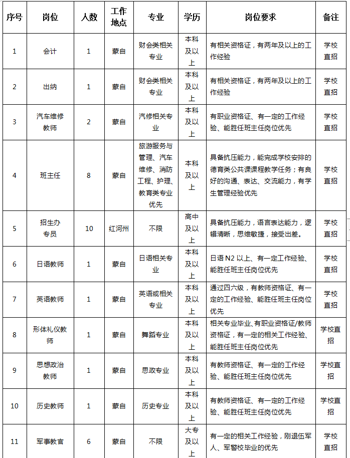 二、招聘崗位(會(huì)計(jì);出納;教師;教官;招生辦專員崗位招聘)