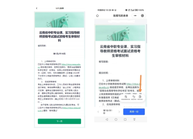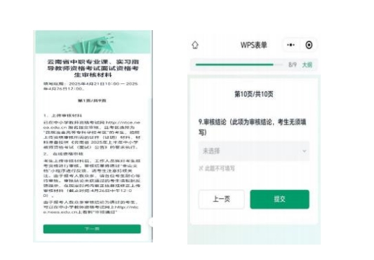 已在中小學(xué)教師資格考試網(wǎng) http://ntce.neea.edu.cn 報名提交審核,且考區(qū)選擇為“昆明冶金高等專科學(xué)校考區(qū)” 的考生,拍照上傳資格審核所需的證件(證明) 材料,材料 準(zhǔn)備按照《云南省 2025 年上半年中小學(xué)教師資格考試(面 試)公告》的要求執(zhí)行,上傳單個文件大小不超過 5M。具體 操作指引和金山文檔小程序二維碼詳見附件,請考生務(wù)必對 照指引進行操作。