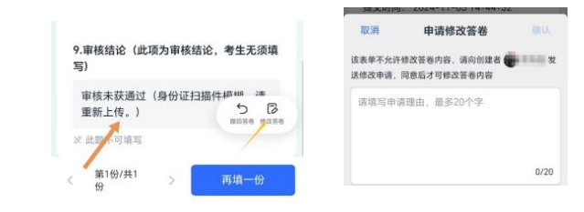 l 待管理員同意修改后,再次點擊“修改答卷”,然后點擊 “下一頁”, 即可重新按照要求修改相關(guān)材料,重新提 交,等待審核結(jié)果。