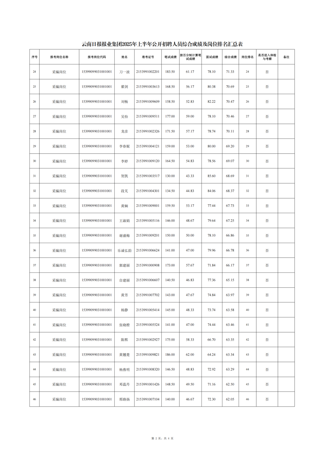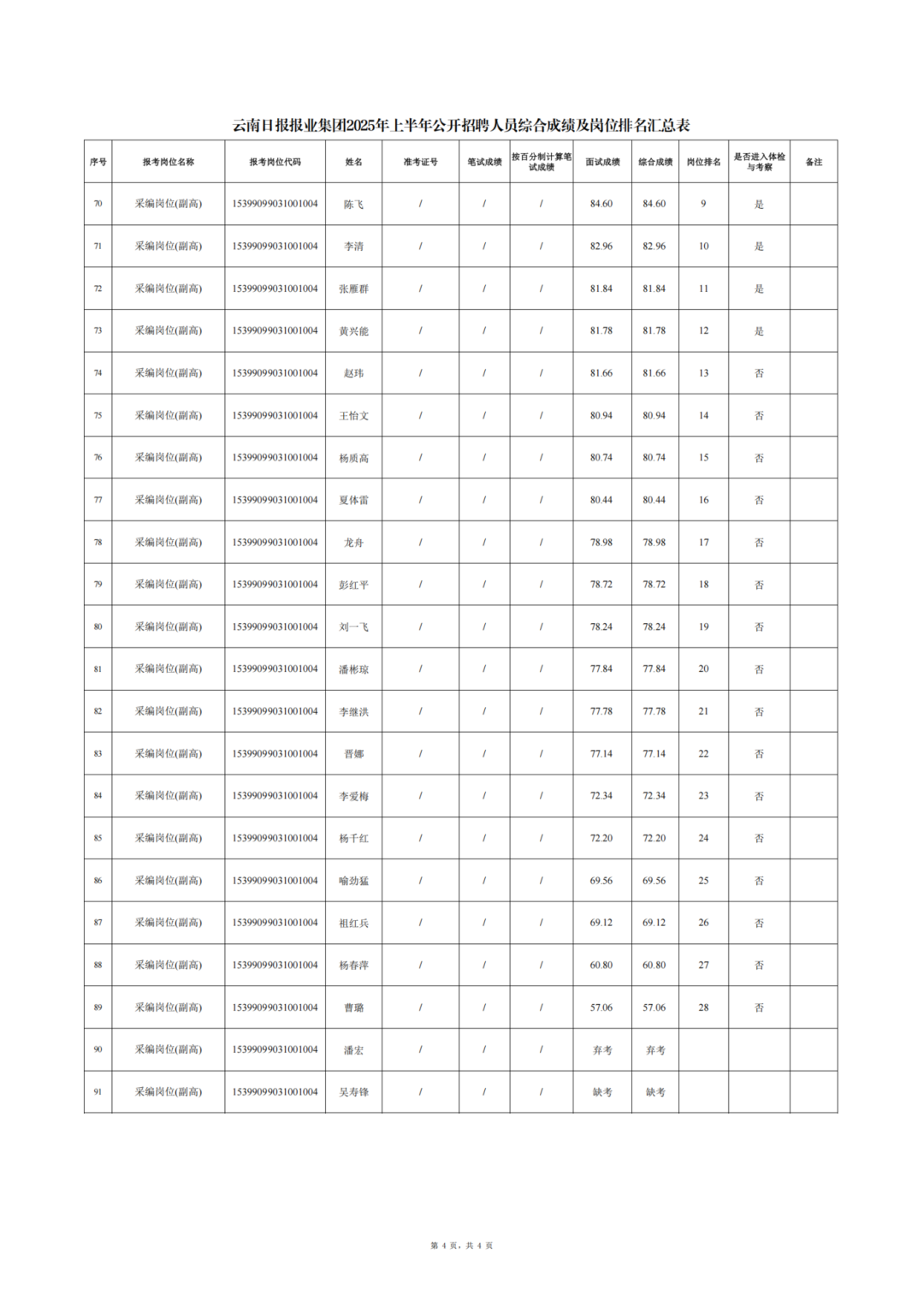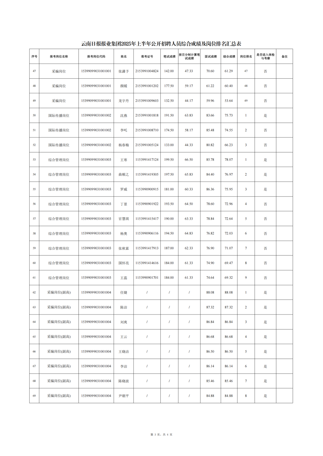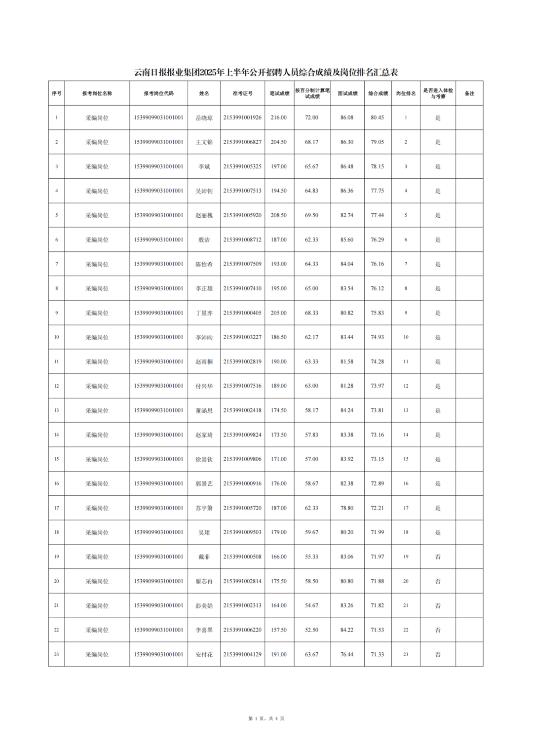 云南日?qǐng)?bào)報(bào)業(yè)集團(tuán)2025年上半年公開(kāi)招聘人員綜合成績(jī)公告