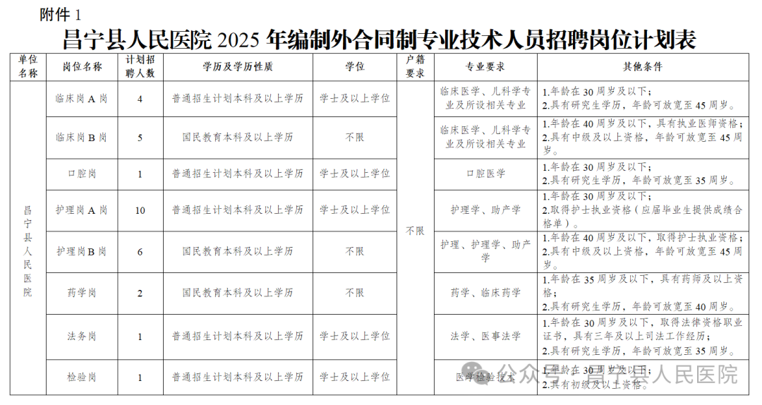 附件:1.昌寧縣人民醫(yī)院2025年編制外合同制專業(yè)技術人員招聘崗位計劃表