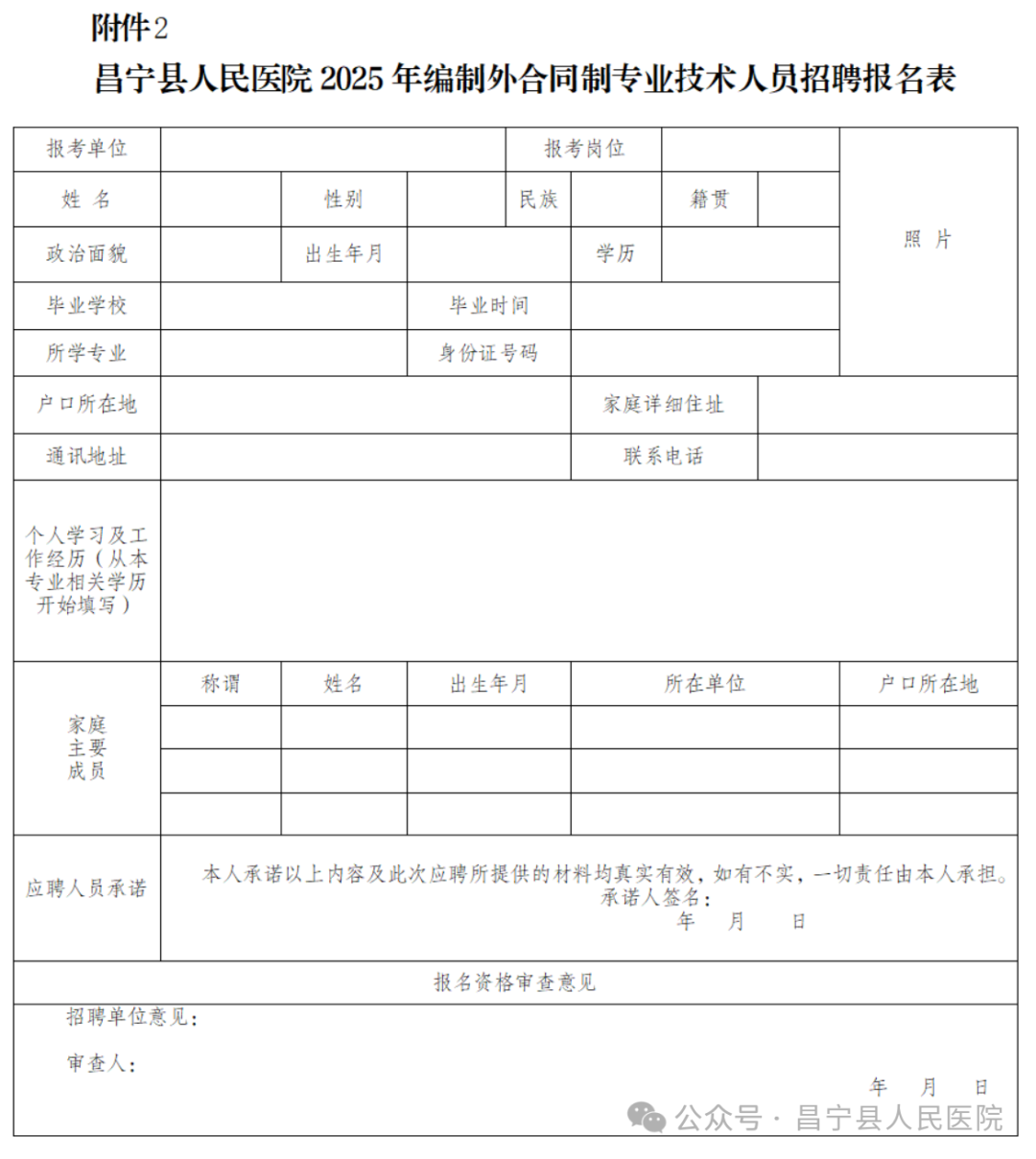 2.昌寧縣人民醫(yī)院2025年編制外合同制專業(yè)技術人員招聘報名表