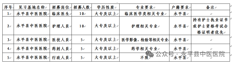 永平縣中醫(yī)醫(yī)院2025年青年就業(yè)見(jiàn)習(xí)生崗位招募公告