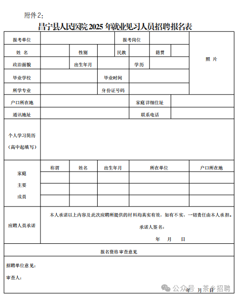 2.昌寧縣人民醫(yī)院2025年就業(yè)見(jiàn)習(xí)人員招聘報(bào)名表