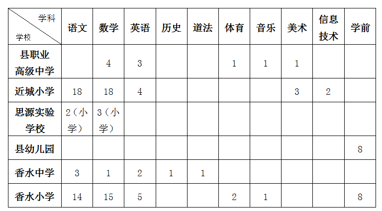 報考縣職業(yè)高級中學(xué)、近城小學(xué)、思源實驗學(xué)校、香水中學(xué)、香水小學(xué)的教師,必須有現(xiàn)任教學(xué)校三年及其以上教學(xué)成績,在我縣壩區(qū)或山區(qū)學(xué)校工作五年及以上并有五年及以上的教學(xué)成績;報考縣幼兒園的教師,須在現(xiàn)任教學(xué)校三年及其以上,且在我縣壩區(qū)或山區(qū)學(xué)校工作五年及以上。上述6所學(xué)校的教師不得相互參加招考和流動,所有報考教師必須具有本科及以上學(xué)歷,具有良好的師德,近3年年度考核合格及以上。報考縣職業(yè)高級中學(xué)的必須具有高中教師資格證,報考幼兒園的必須具有幼兒園教師資格證。