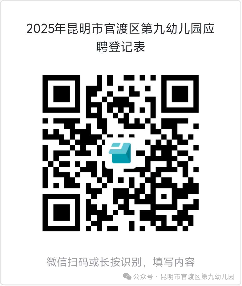 報(bào)名采取網(wǎng)絡(luò)方式進(jìn)行,點(diǎn)擊下面鏈接或掃描二維碼進(jìn)入《2025年官渡區(qū)第九幼兒園應(yīng)聘登記表》網(wǎng)頁后,如實(shí)填寫個(gè)人相關(guān)信息,上傳應(yīng)聘所需材料進(jìn)行報(bào)名,點(diǎn)擊“提交”后則報(bào)名完成。