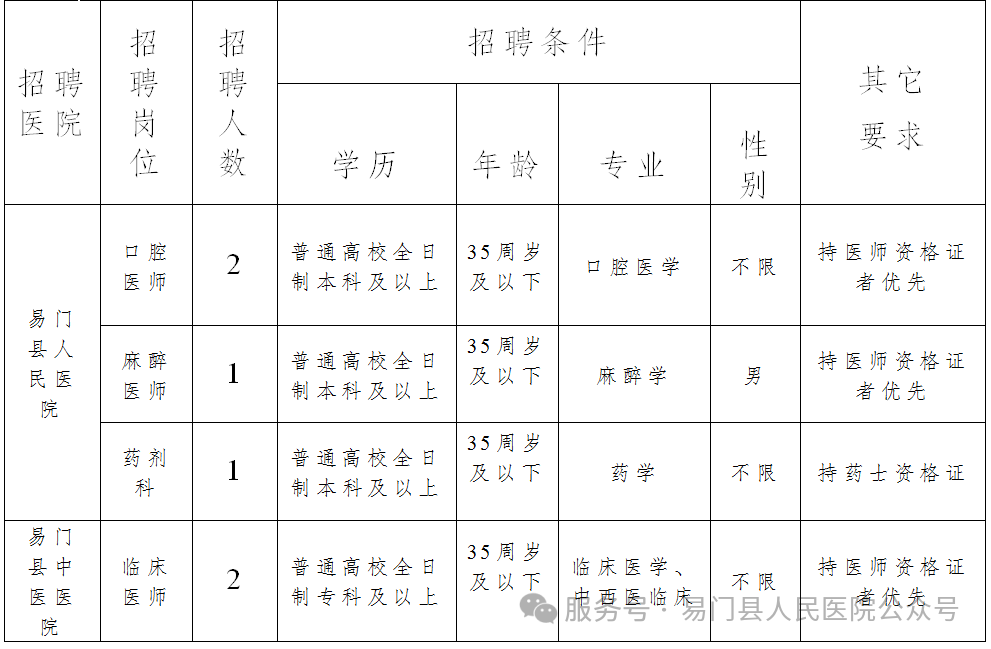 易門(mén)縣緊密型醫(yī)共體總醫(yī)院2025年8月公開(kāi)招聘編制外工作人員公告