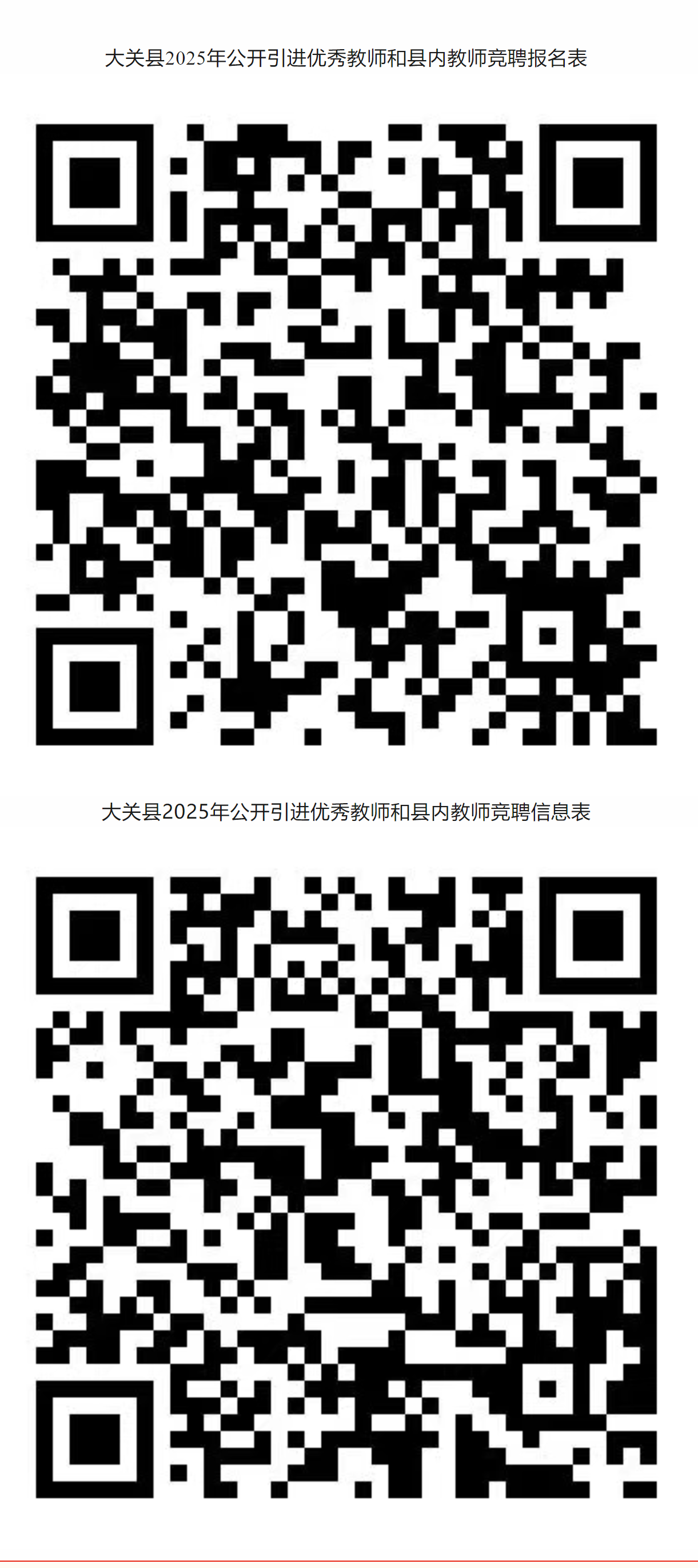 (1)大關(guān)縣2025年公開引進優(yōu)秀教師和縣內(nèi)教師競聘上崗報名表(附件2,雙面打印,貼近期免冠小一寸彩色相片,縣外人員須有報名者所在縣級教育主管部門和人力資源和社會保障局同意報考的簽章,縣內(nèi)人員須有報名者所在學(xué)校同意報考的簽章)。