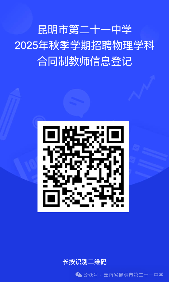 昆明市第二十一中學(xué)2025年秋季學(xué)期招聘物理學(xué)科合同制教師公告