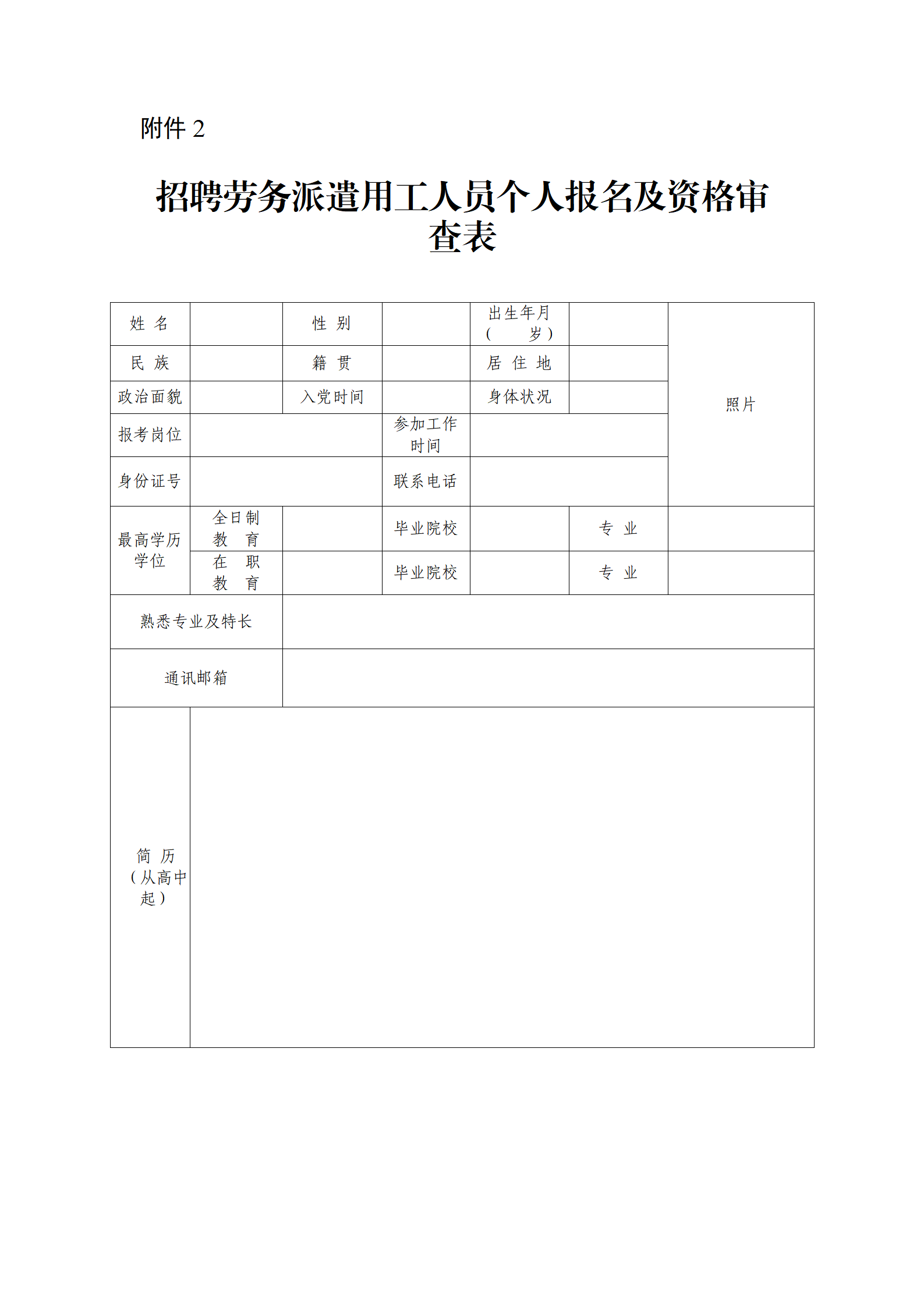 2.招聘勞務派遣用工人員個人報名及資格審查表