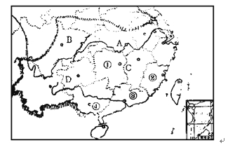 (1)據(jù)報(bào)道,2003年12月9日,黃河內(nèi)蒙古河段累計(jì)封凍230千米,圖中字母A、B、C、D、E代表的五條河流中,表示黃河的字母代號(hào)是。與黃河一樣有結(jié)冰期的是B河和A河;在這五條河流中,汛期最長(zhǎng)的河流是河;圖中內(nèi)流區(qū)域和外流區(qū)域的分界線與mm等降水量線相似。