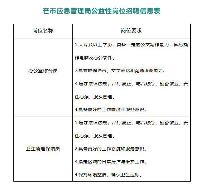 芒市應(yīng)急管理局公益性崗位招聘公告