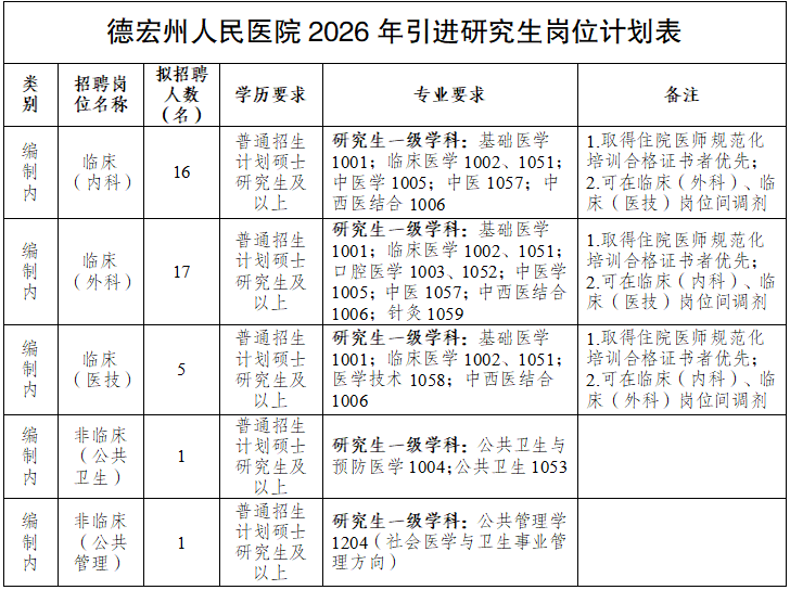 德宏州人民醫(yī)院2026年公開引進(jìn)研究生公告