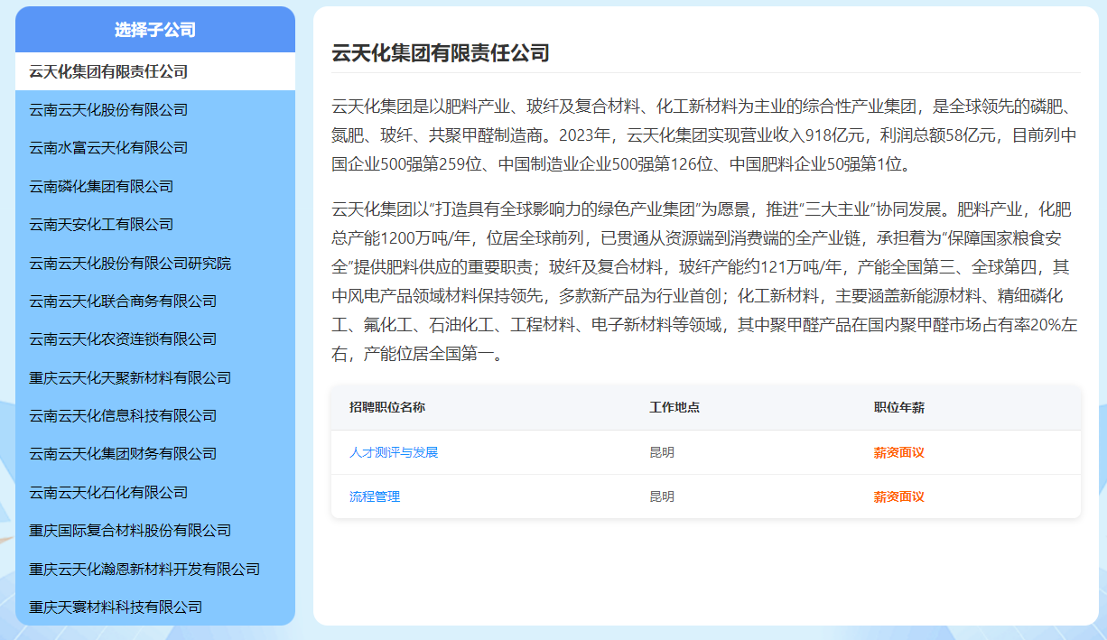 云天化集團(tuán)是以肥料產(chǎn)業(yè)、玻纖及復(fù)合材料、化工新材料為主業(yè)的綜合性產(chǎn)業(yè)集團(tuán),是全球領(lǐng)先的磷肥、氮肥、玻纖、共聚甲醛制造商。近年來,集團(tuán)年?duì)I業(yè)收入平均近900億元、年利潤總額超55億元,資產(chǎn)總額超1000億元。集團(tuán)連續(xù)多年上榜中國企業(yè)500強(qiáng)榜單,位列中國制造業(yè)企業(yè)500強(qiáng)第159位。2024年,集團(tuán)實(shí)現(xiàn)營收774.1億元,利潤總額61.6億元,保持穩(wěn)定向好的發(fā)展勢(shì)頭,跑贏市場和同行。