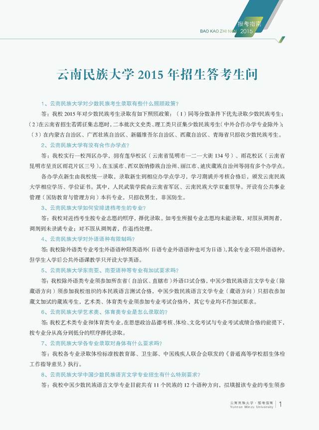 云南民族大學(xué)2015年各學(xué)院簡(jiǎn)介及專業(yè)設(shè)置