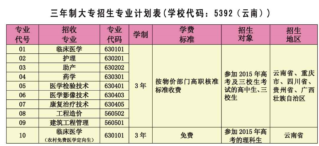 德宏職業(yè)學(xué)院2015年三年制大專招生專業(yè)計劃表