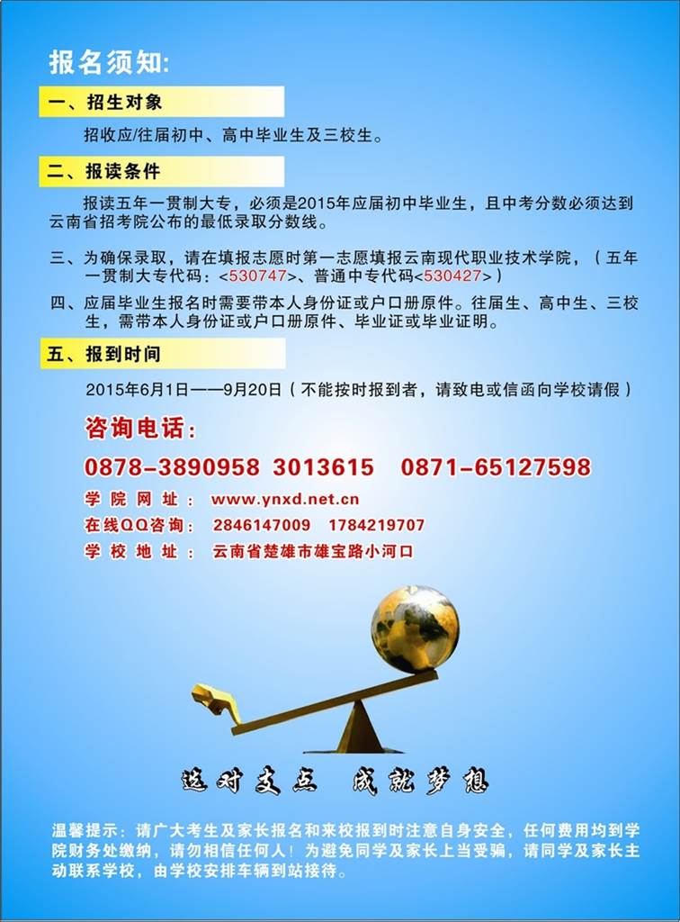 云南現(xiàn)代職業(yè)技術(shù)學(xué)院2015年招生簡(jiǎn)章