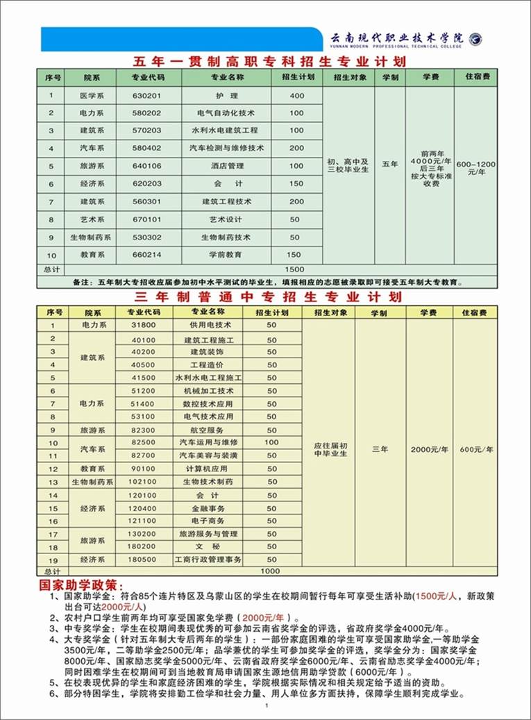 云南現(xiàn)代職業(yè)技術(shù)學(xué)院招生信息匯總