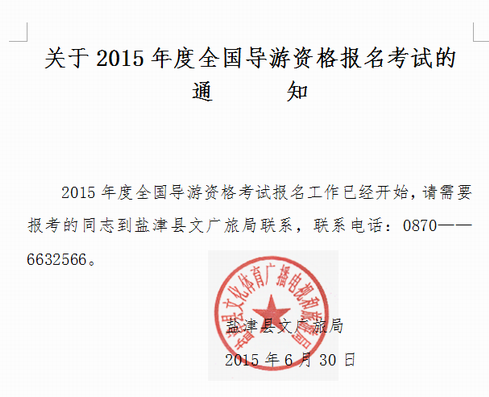 鹽津縣2015年度全國(guó)導(dǎo)游資格報(bào)名考試通知