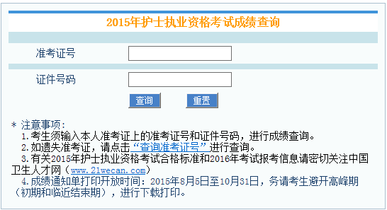 中國衛(wèi)生人才網(wǎng)(www.21wecan.com)是唯一能夠查詢并獲取2015年全國護(hù)士執(zhí)業(yè)資格考試成績信息的正式途徑,通過其他網(wǎng)站、郵件、聊天工具、手機(jī)短信、電話等方式散布的“考試未過,可內(nèi)部操作”、“內(nèi)部加分”、“包過”等聲稱可以修改考試成績的消息全部為詐騙信息,望廣大考生警惕上當(dāng)受騙!如遇到上述情形,請及時向公安機(jī)關(guān)舉報。