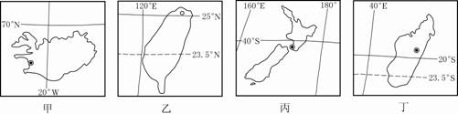21.圖4表示甲、乙、丙、丁四個國家的人口出生率與死亡率。其中反映人口高出生率、低死亡率、高自然增長率特點(diǎn)的國家是